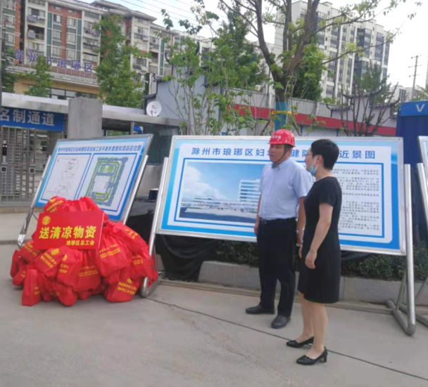 2021年7月23日上午,瑯琊區總工會開展了“關愛職工·夏送清涼”活動,在炎炎夏日,瑯琊區總工會主席丁曉麗攜工會工作人員為安徽華建一線工人送去一片清涼。