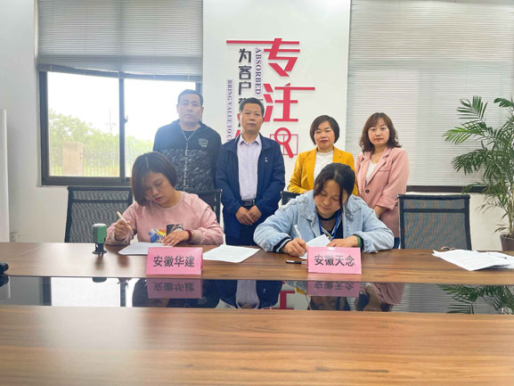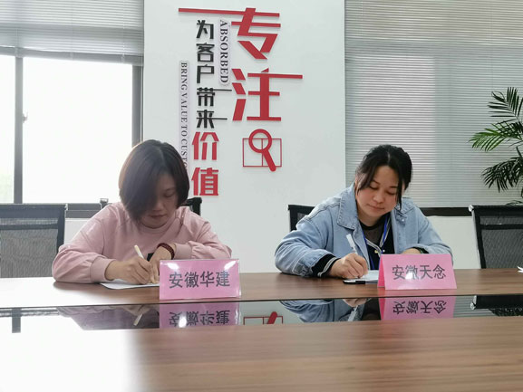4月27日下午,由瑯琊區總工會搭橋,我公司工會與安徽天念材料科技有限公司工會開展“結對共建”,并簽訂了《結對共建協議書》。以“竭誠服務職工,維護職工合法權益”為核心,發揮示范工會組織的模范作用,通過開展工作交流、學習觀摩、文體等活動,相互促進、共同提高2家基層非公企業工會工作水平。