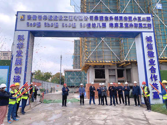 萬丈高樓平地起,從一紙藍圖到地基,再到喜封金頂,是經歷了無數個日日夜夜的精雕細琢,每一磚一瓦的砌壘都傾注了大量的時間與心血。2022年10月28日上午,東升鄰里安置小區二期工程在市重點處孟現斌主任、業主代表蔡軍、王軍科長以及監理單位總監馬如的見證下,舉行了隆重的封頂儀式。
